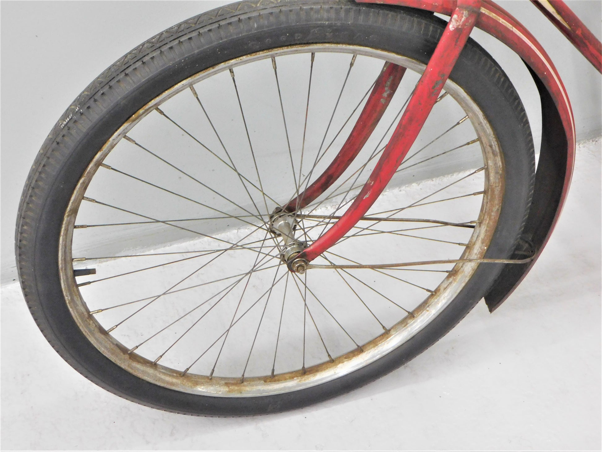 Iver Johnson - owner of Iver Johnson Arms and Cycles made bicycles for his friend John Lovell - owner of Lovell Sporting Goods from 1884-1895 when Mr. Johnson passed. Around 1900, Iver Johnson Arms and Cycles bought Lovell Sporting Goods and resumed making Lovell-Diamond bicycles until around 1941. This particular bicycle can be dated around mid-late 1930s based on the New Departure Model D Brake Arm on it. That particular brake arm was used from 1934-1938. The bicycle is mostly original as you can see from the missing back kickstand and condition of the seat. ALL ITEMS SOLD "AS-IS"