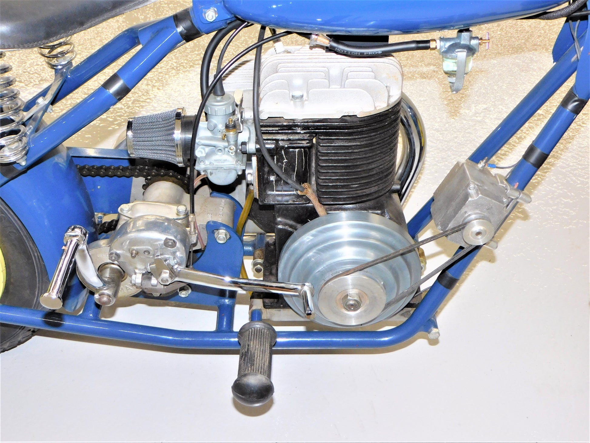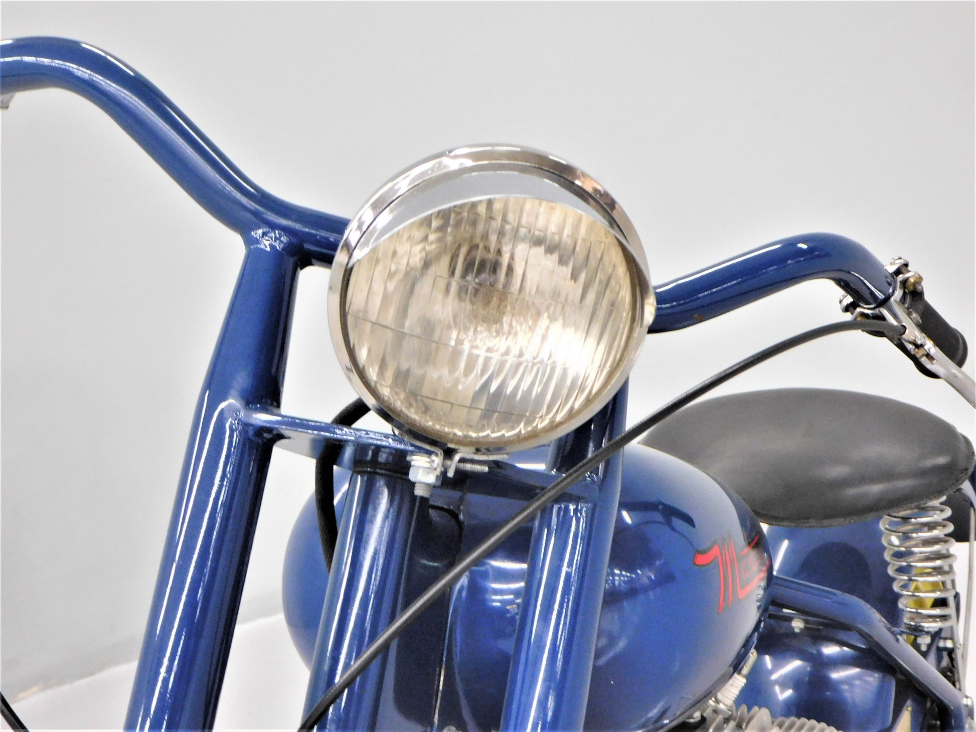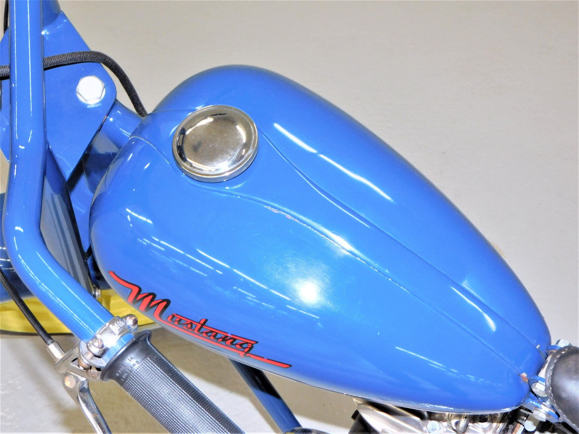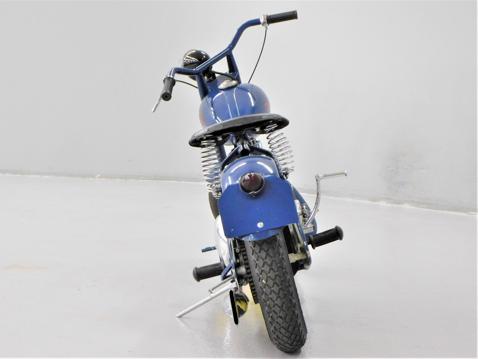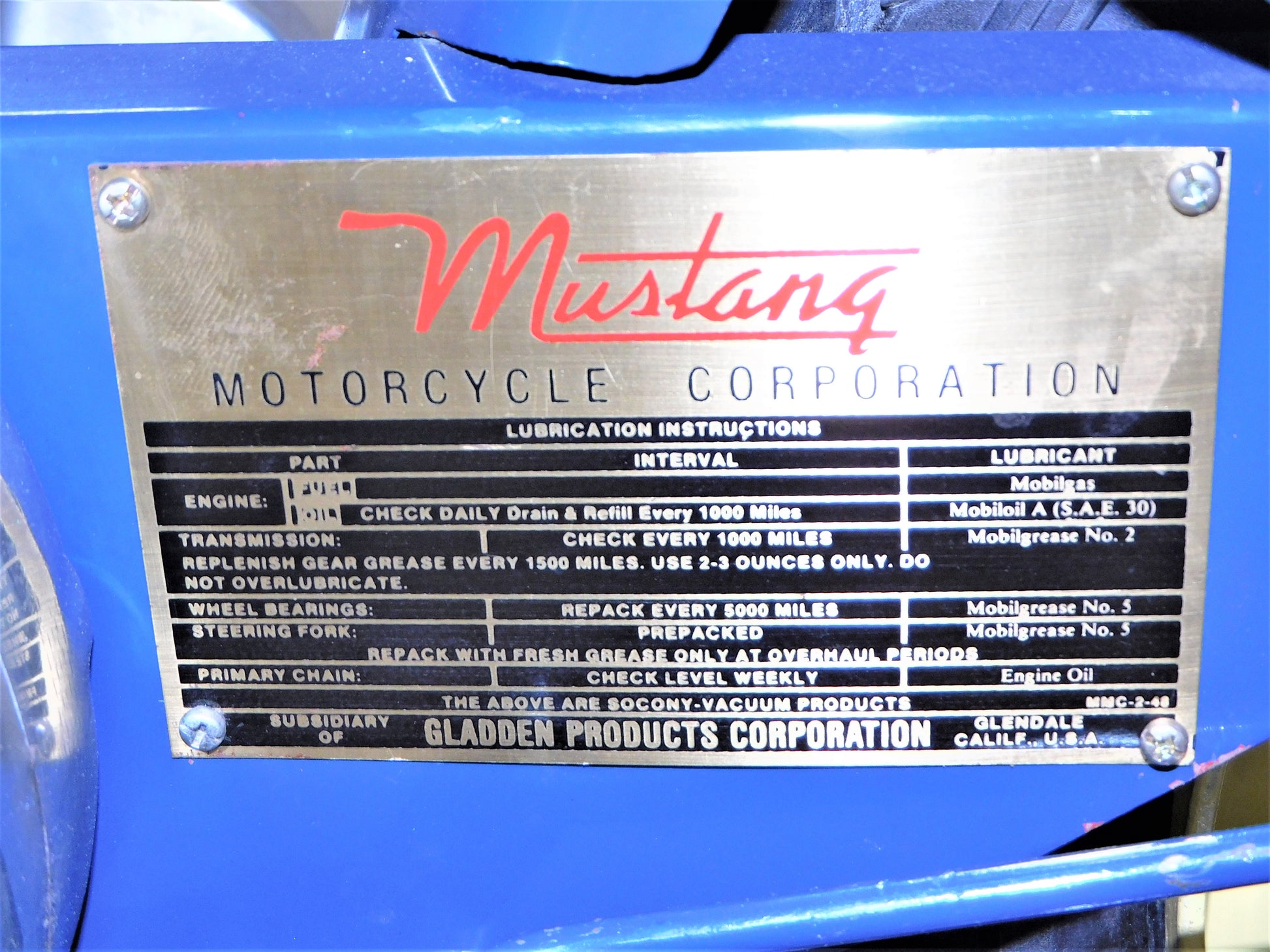The Mustang was a lightweight motorcycle built by Gladden Products Corporation in Glendale, California from 1946-1965 as a transition between a scooter and a full-sized motorcycle. British Villers engines were hard to come by after the war, so Gladden purchased the Busy Bee Company, a manufacturer of small engines. In 1947, they introduced the Mustang Model 2 utilizing the new Busy Bee 320cc side-valve single cylinder engine and a 3-speed Burman transmission (made in England). This 1947 Mustang Model 2 has been fully restored and runs well. The consignor does not have a title for this scooter, but we will get it titled for you. ALL ITEMS SOLD "AS-IS".