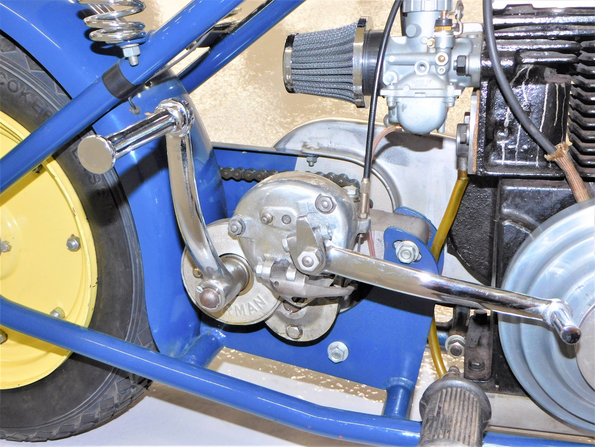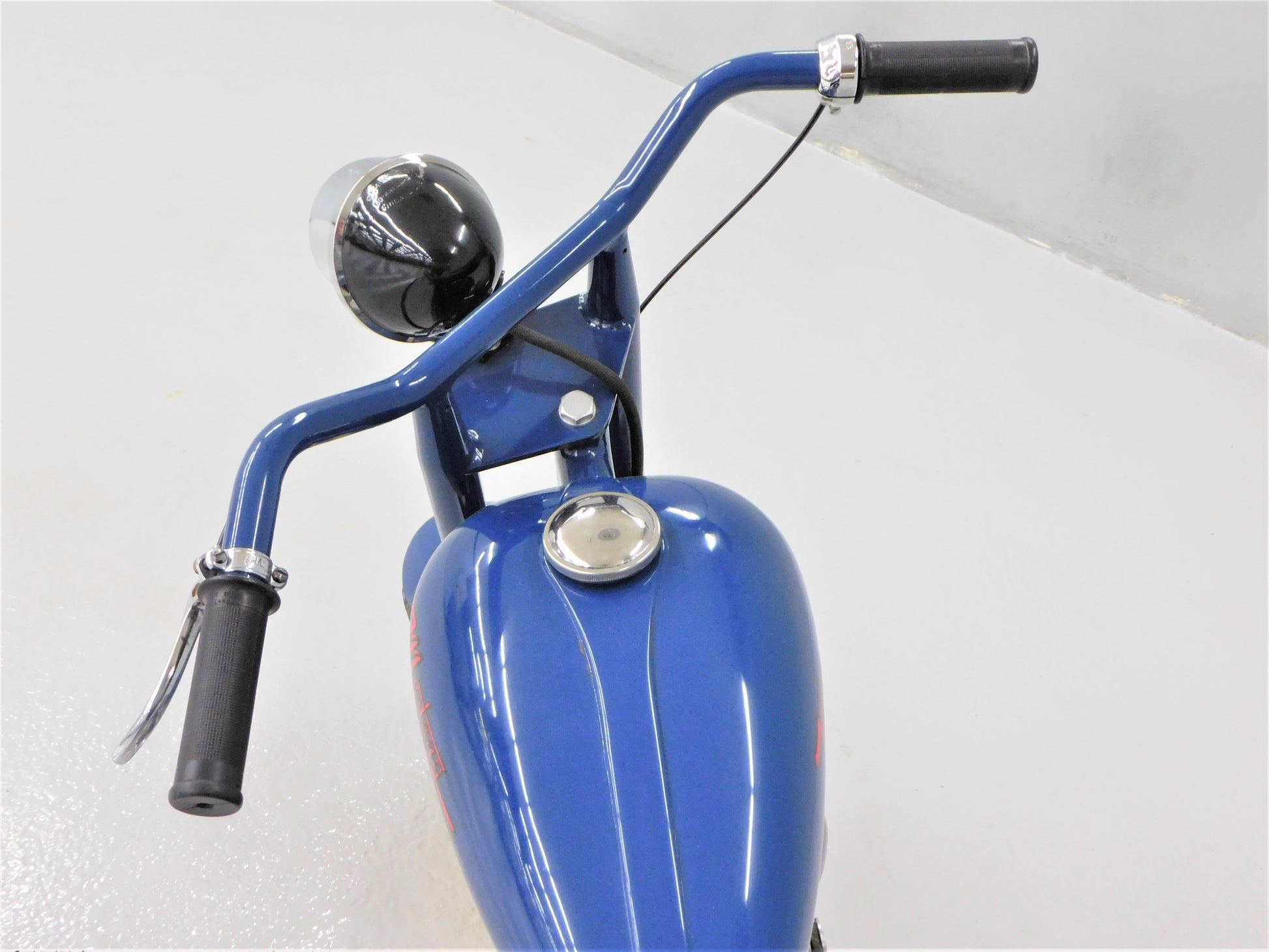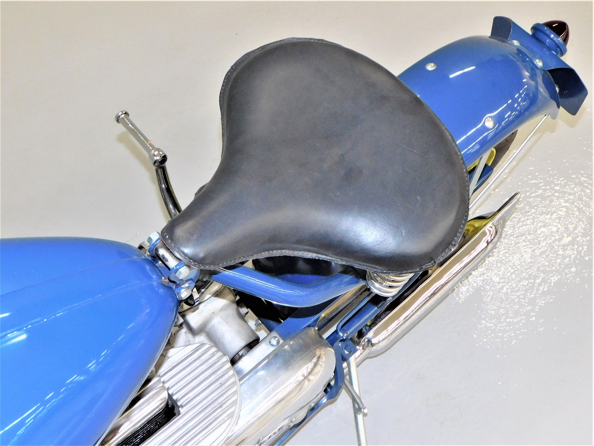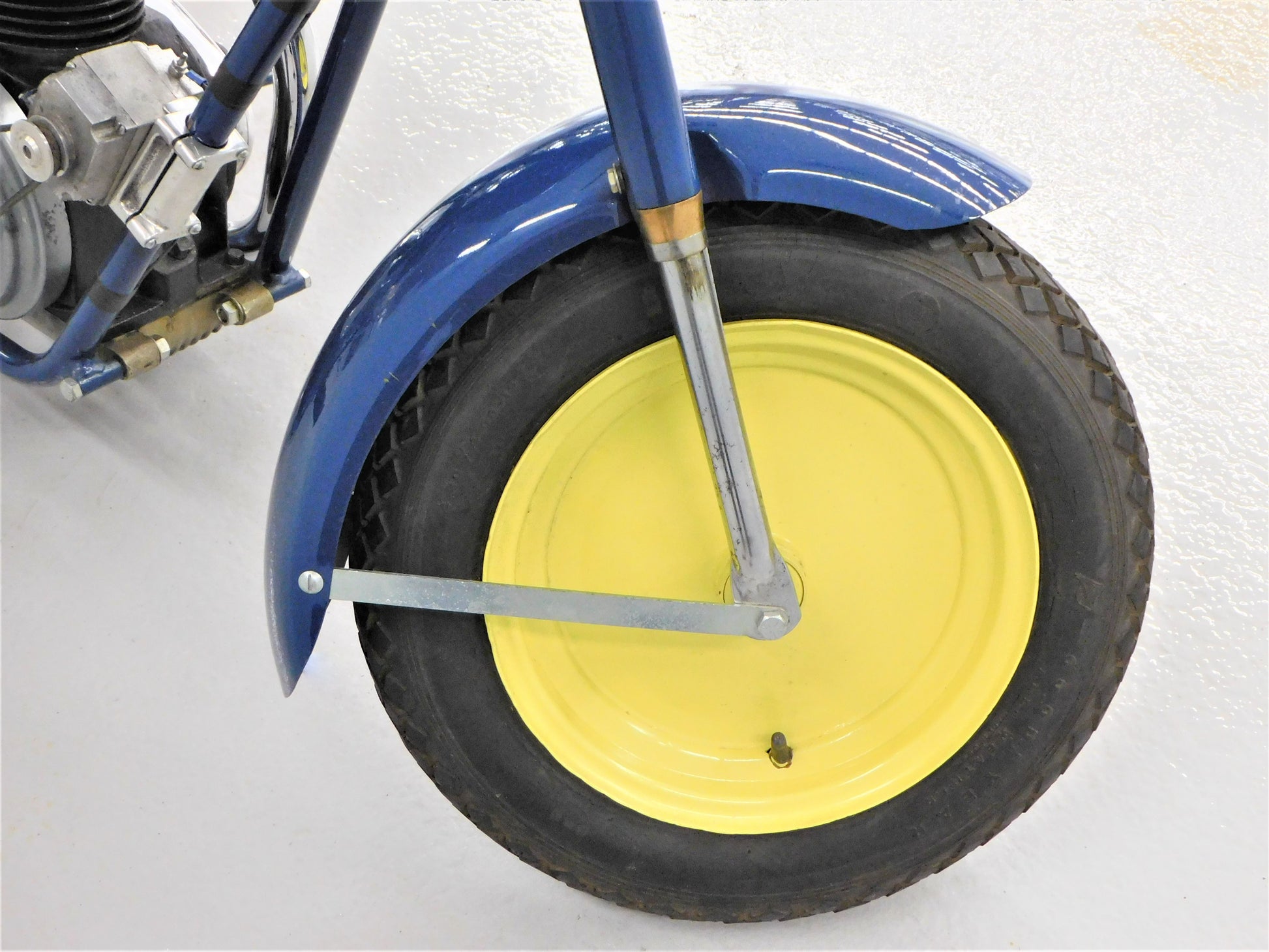 The Mustang was a lightweight motorcycle built by Gladden Products Corporation in Glendale, California from 1946-1965 as a transition between a scooter and a full-sized motorcycle. British Villers engines were hard to come by after the war, so Gladden purchased the Busy Bee Company, a manufacturer of small engines. In 1947, they introduced the Mustang Model 2 utilizing the new Busy Bee 320cc side-valve single cylinder engine and a 3-speed Burman transmission (made in England). This 1947 Mustang Model 2 has been fully restored and runs well. The consignor does not have a title for this scooter, but we will get it titled for you. ALL ITEMS SOLD "AS-IS".