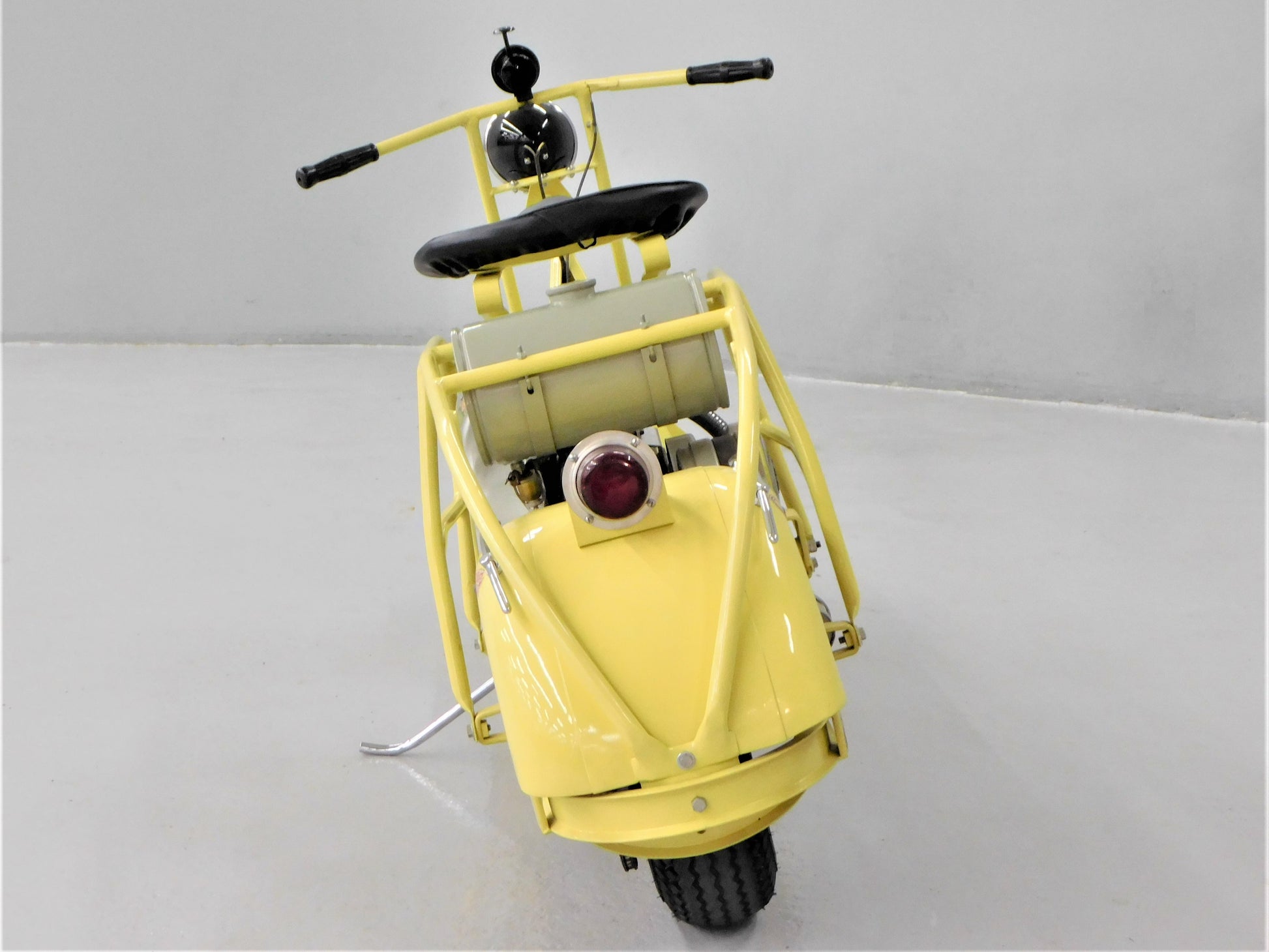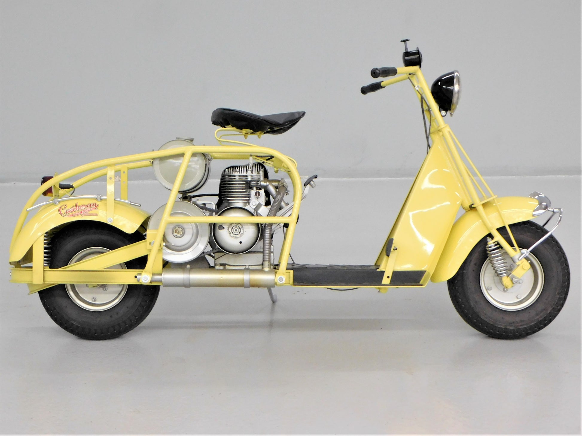 The 1952 Cushman 60 Series Super Model 64A is a retro-cool ride! This yellow beauty has been restored to its former glory, with a 5 HP engine and Variomatic Transmission. History buffs might note that the color isn't authentic to the year, but hey, it's still awesome! This is a running scooter. The consignor does not have a title for this scooter, but we will get it titled for you. ALL ITEMS SOLD "AS-IS"