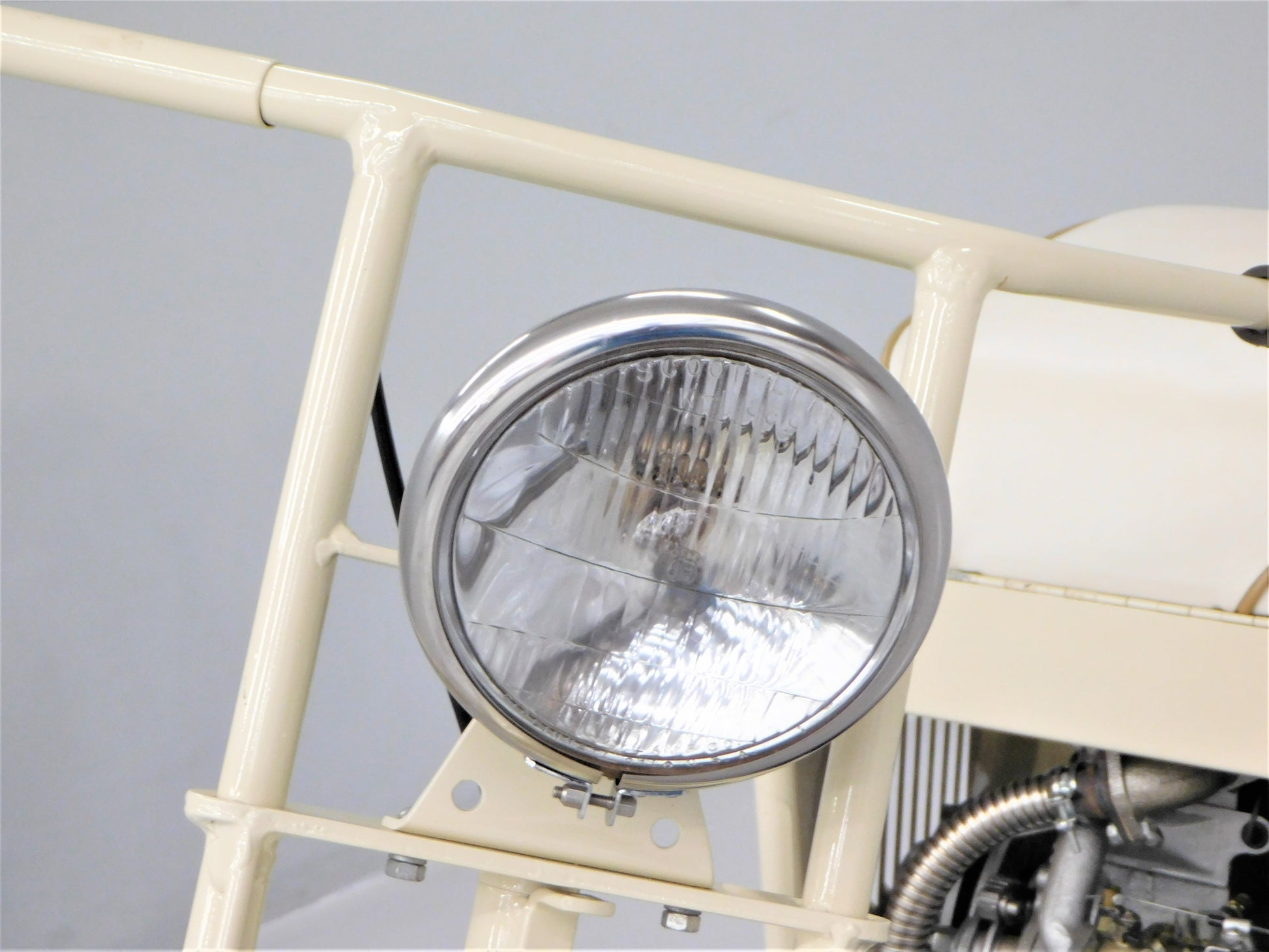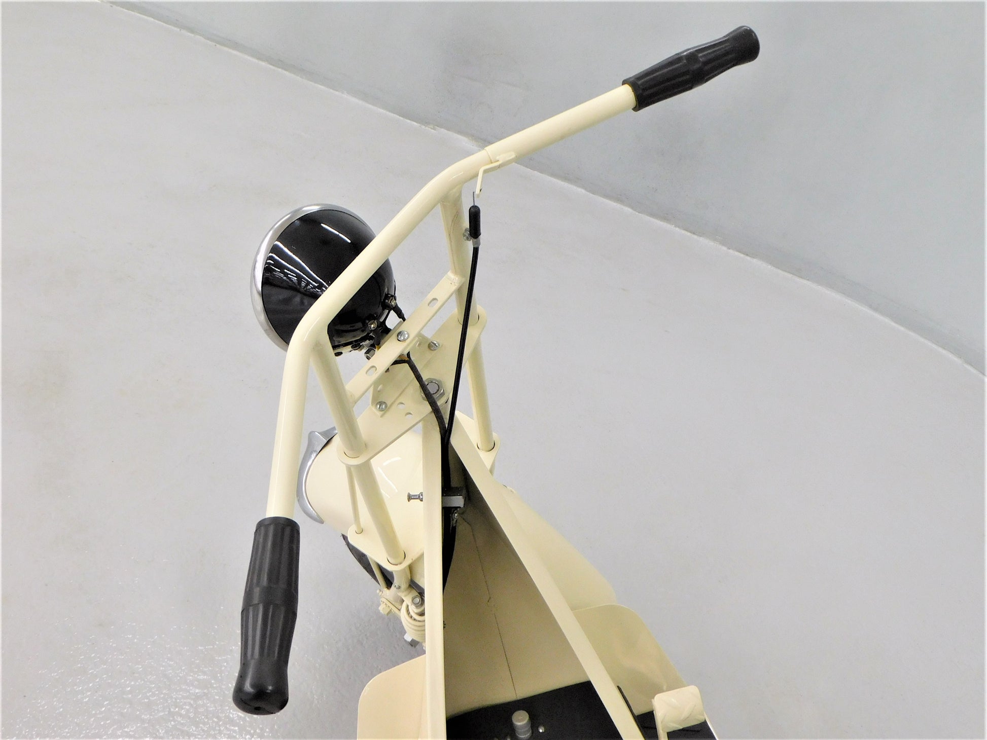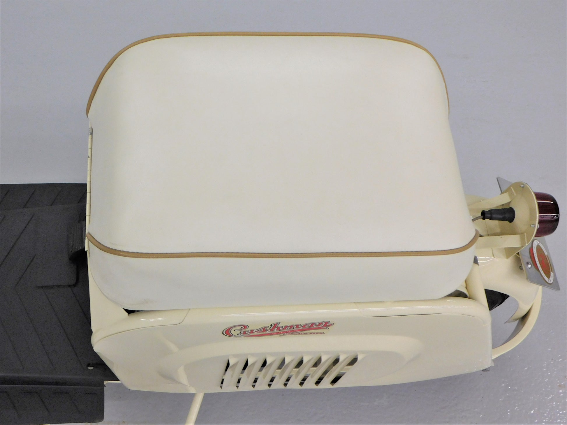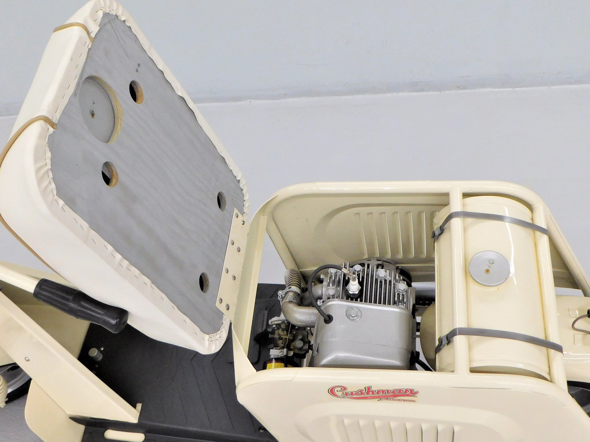 Discover the classic beauty of a fully restored 1952 Cushman Deluxe Highlander. Lovingly and meticulously brought back to its original condition by Sonny Sain, master watch repair man, this piece features remarkable detail and uncompromising quality in starlight white. A timeless classic, you won't find a finer example elsewhere. This is a running scooter. The consignor does not have a title for this scooter, but we will get it titled for you. ALL VEHICLES SOLD "AS-IS".