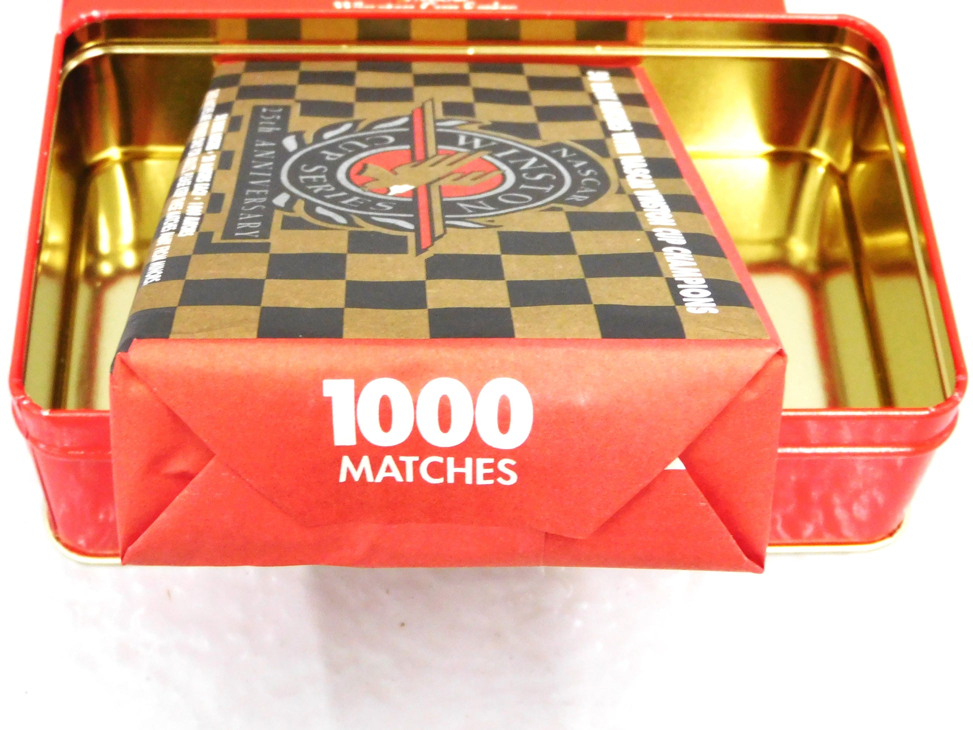 It's lights, camera, FIRE with this collectible, unopened 50 matchbook set celebrating 25 years of NASCAR champions! Get yourself a piece of history and light up any room with this one-of-a-kind tin box! Race down to get yours now! ALL ITEMS SOLD "AS-IS"