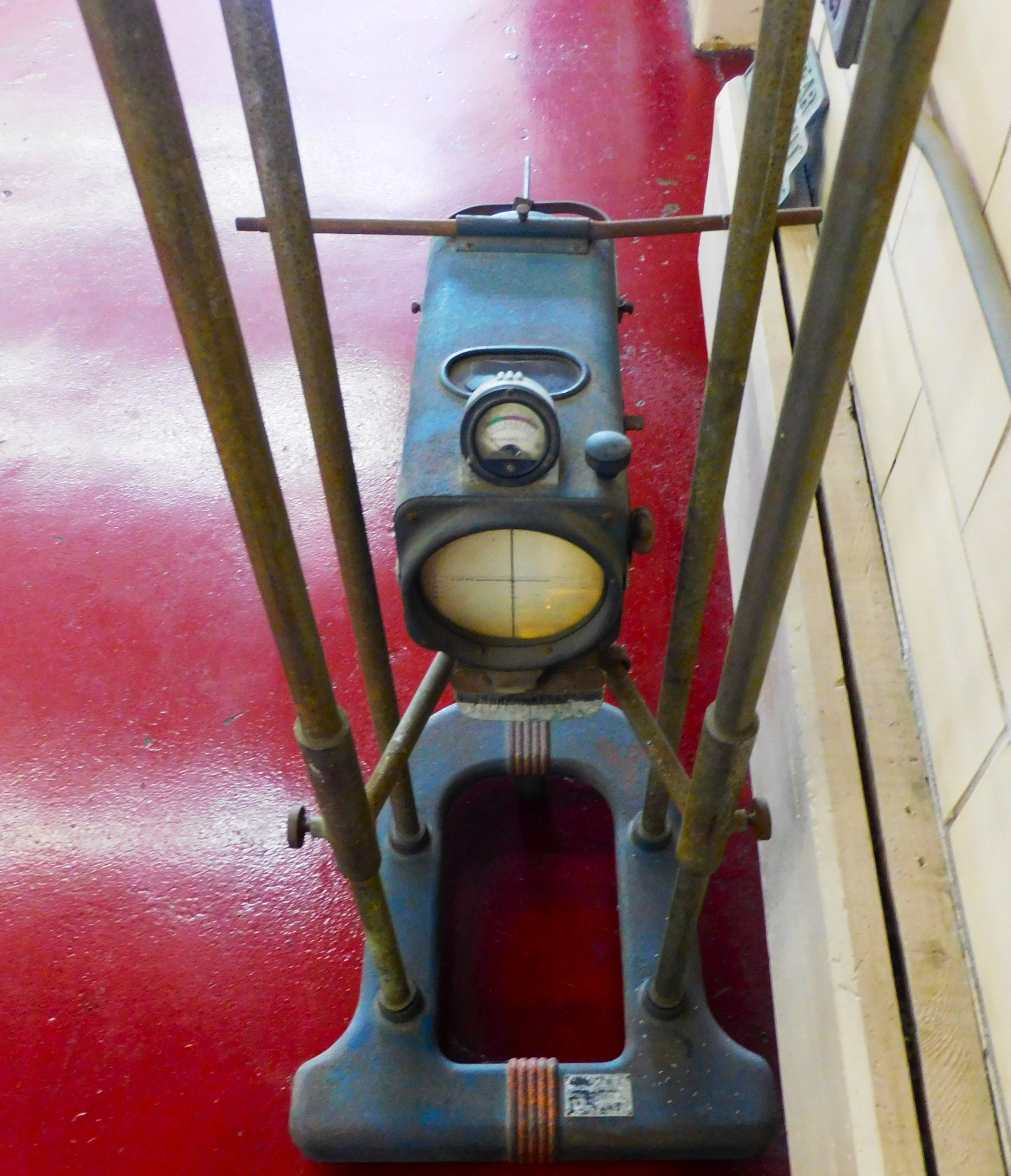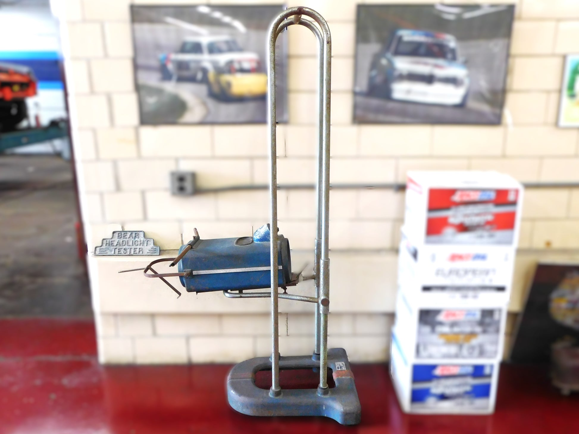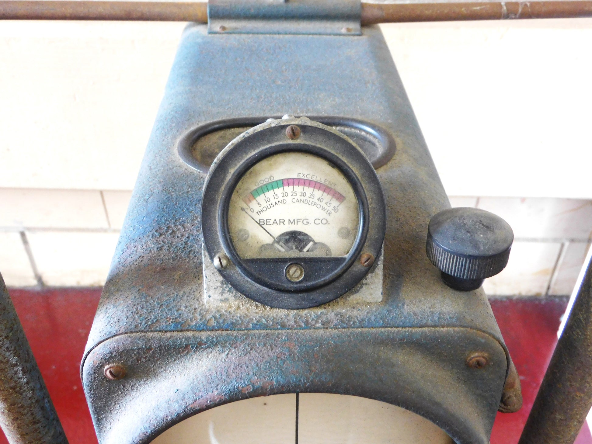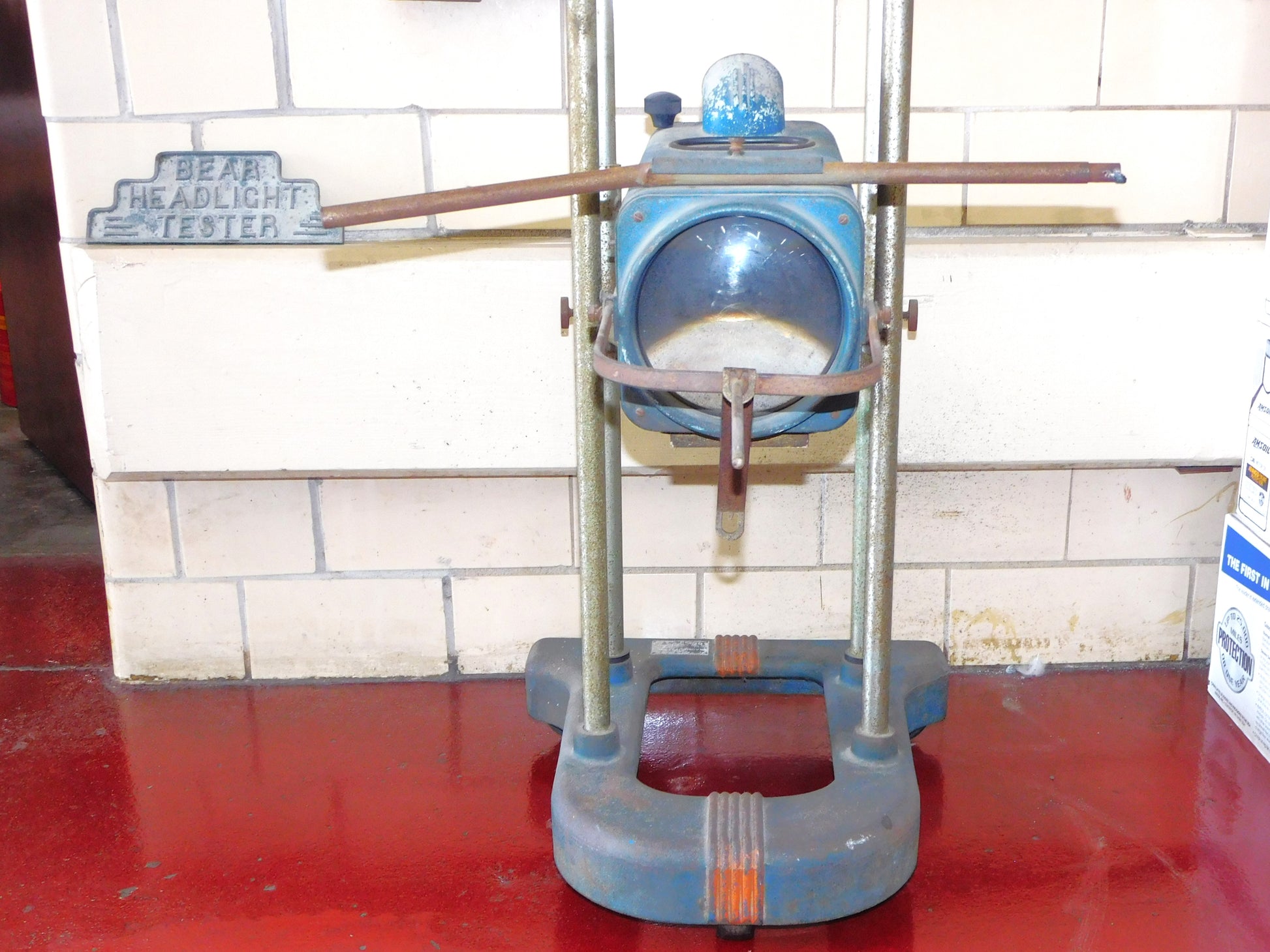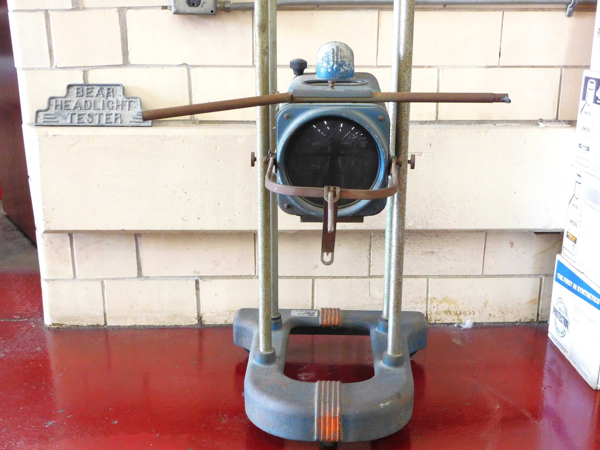 Keep your headlights shining bright with the Bear Headlight Tester. No electricity is needed for this handy tool that ensures proper alignment for maximum visibility. Drive safely (and brilliantly) with this quirky and essential device. The Bear Headlight Tester sign is normally attached to the top. We have the sign, but the connectors are missing. This tester is all original and the model looks to be 555. ALL ITEMS SOLD "AS-IS"