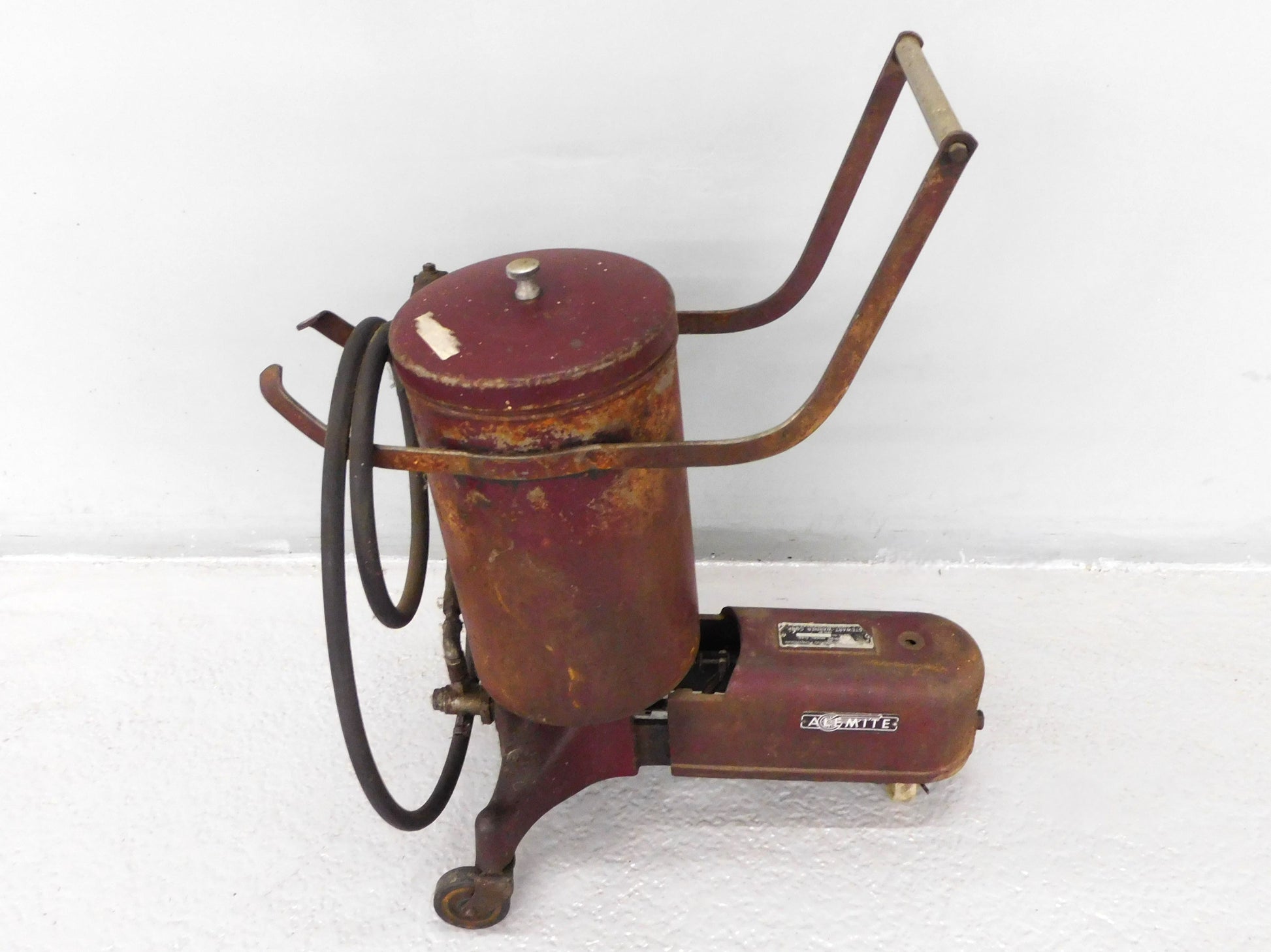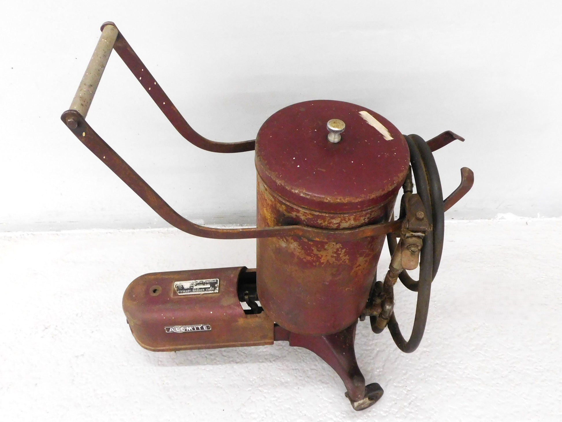 The Alemite Company manufactured pneumatically powered grease guns in the 1930s. They were air-operated and designed to inject hard or soft grease quickly into a machinery bearing. This vintage Alemite powergun is a Type HP-25, Model 6184. It was used on the looms and other machines to keep them running smoothly here in Gibson Mill, home of AutoBarn Classic Cars when it was a textile mill. ALL ITEMS SOLD "AS-IS"