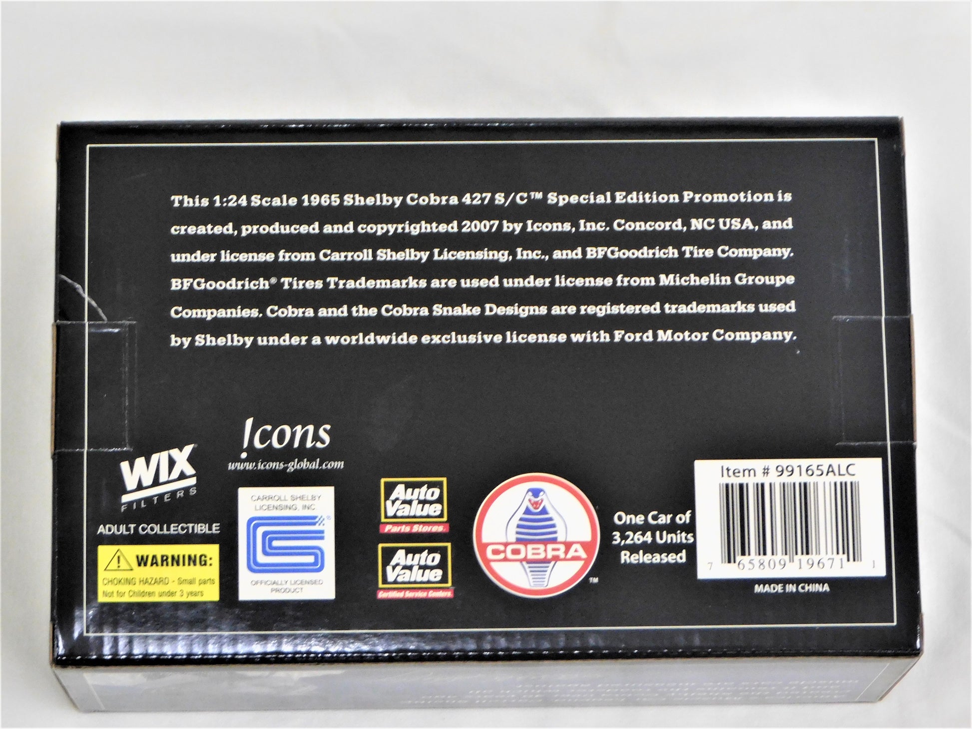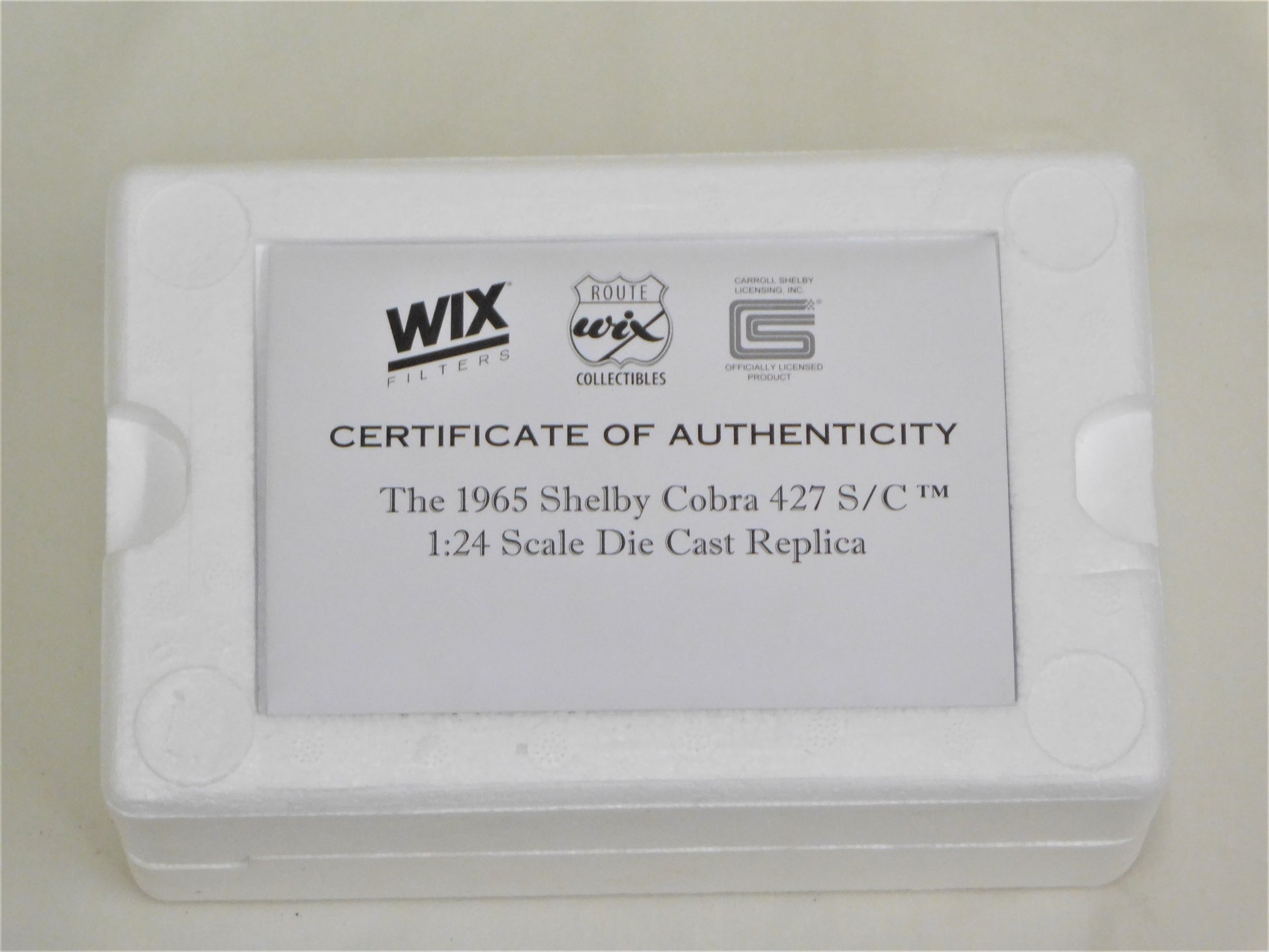 WIX Filters started their collectible promotions (offered at a special price with the purchase of two WIX filters) in 1991 and offered a different die cast vehicle every year until 2013. In 2007, WIX captured the Shelby Cobra 427 Sport Coupe, complete with a customized paint scheme and WIX filter under the hood. The main collectible was the blue Shelby, with a limited release of Dark Grey Metallic.