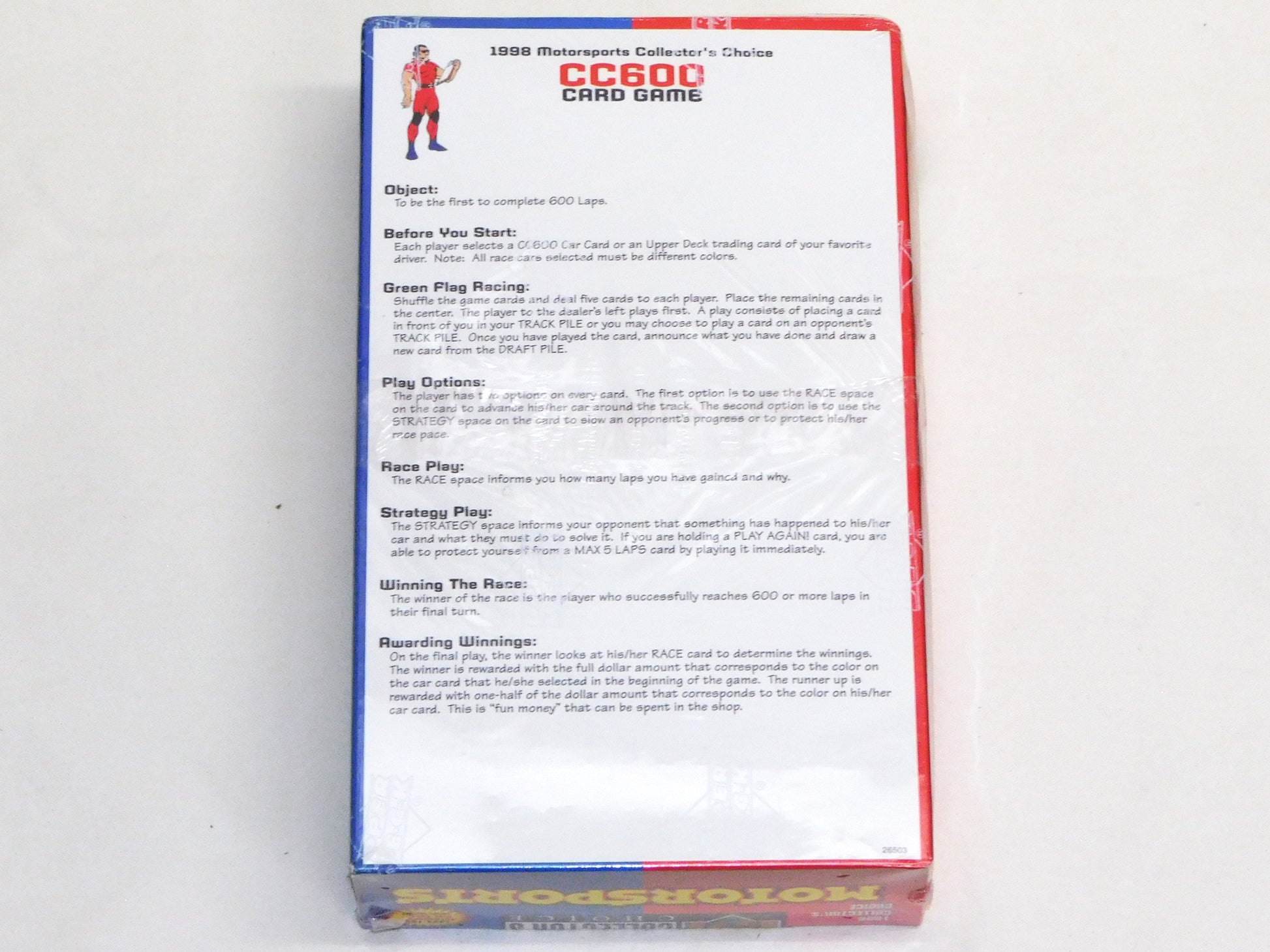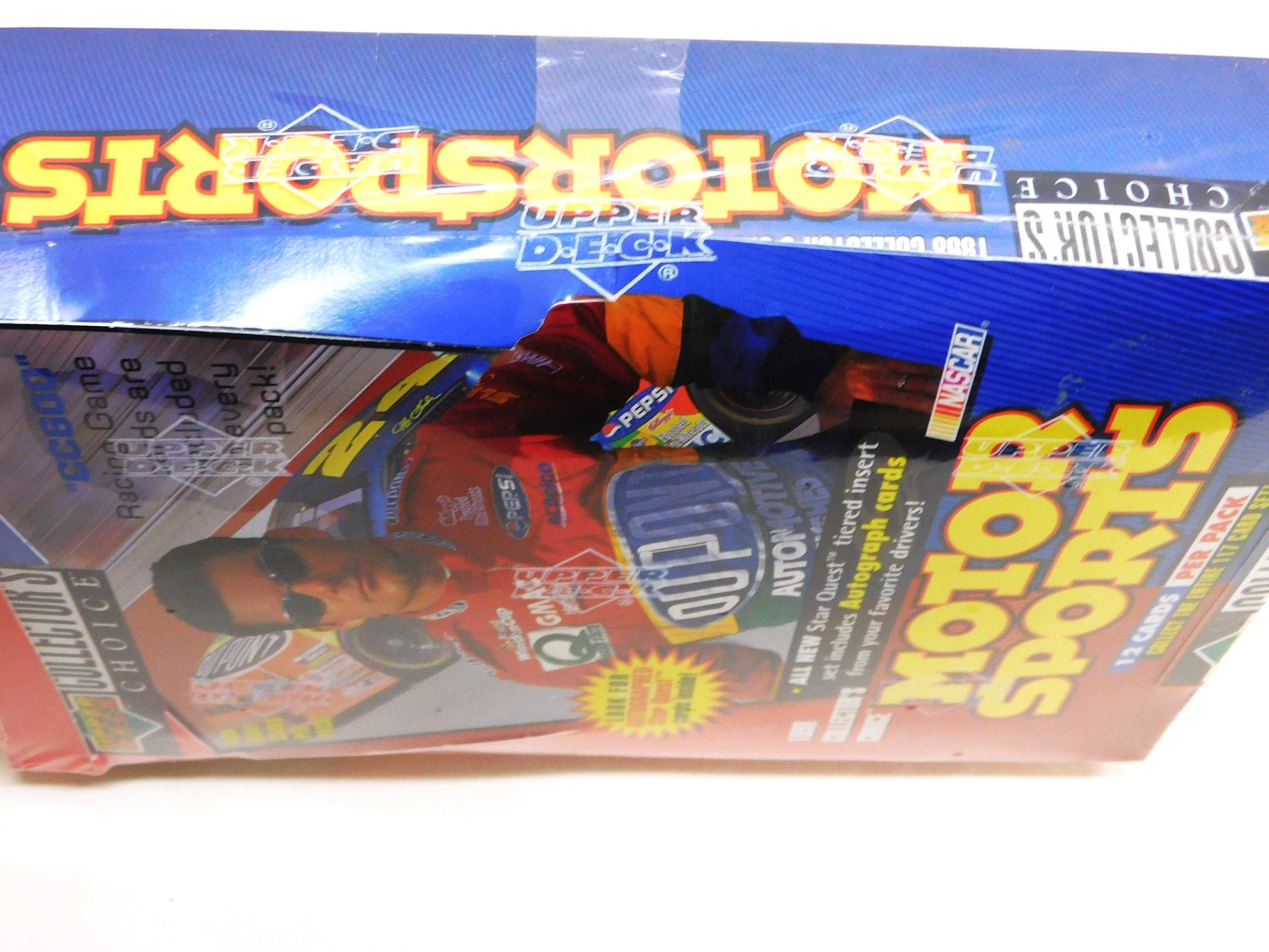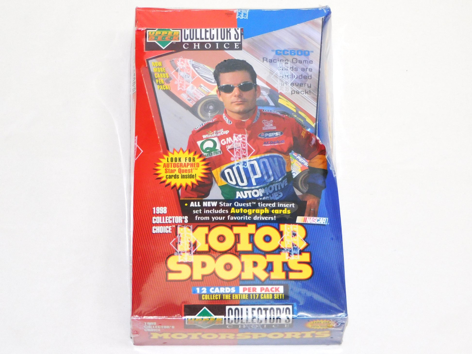The 1998 Collector's Choice set was issued in one series totaling 117 cards and featured the top names in NASCAR. From what we can tell, the cards were packaged 12 cards per pack and 36 packs per box. This is an unopened, factory-sealed, display box for packs. The bottom of the box has directions for the CC600 Card Game using the cards in this series. ALL ITEMS SOLD "AS-IS"