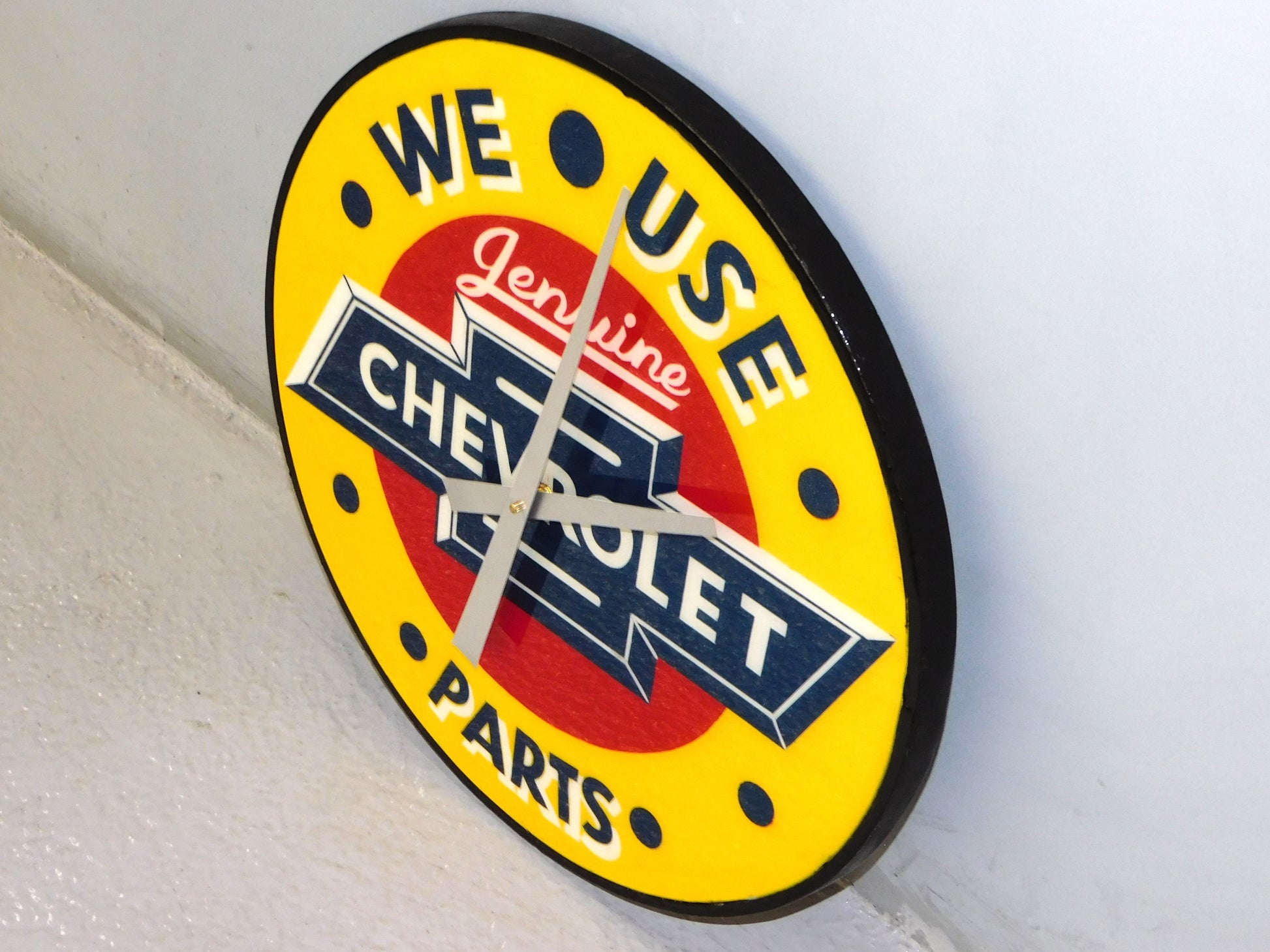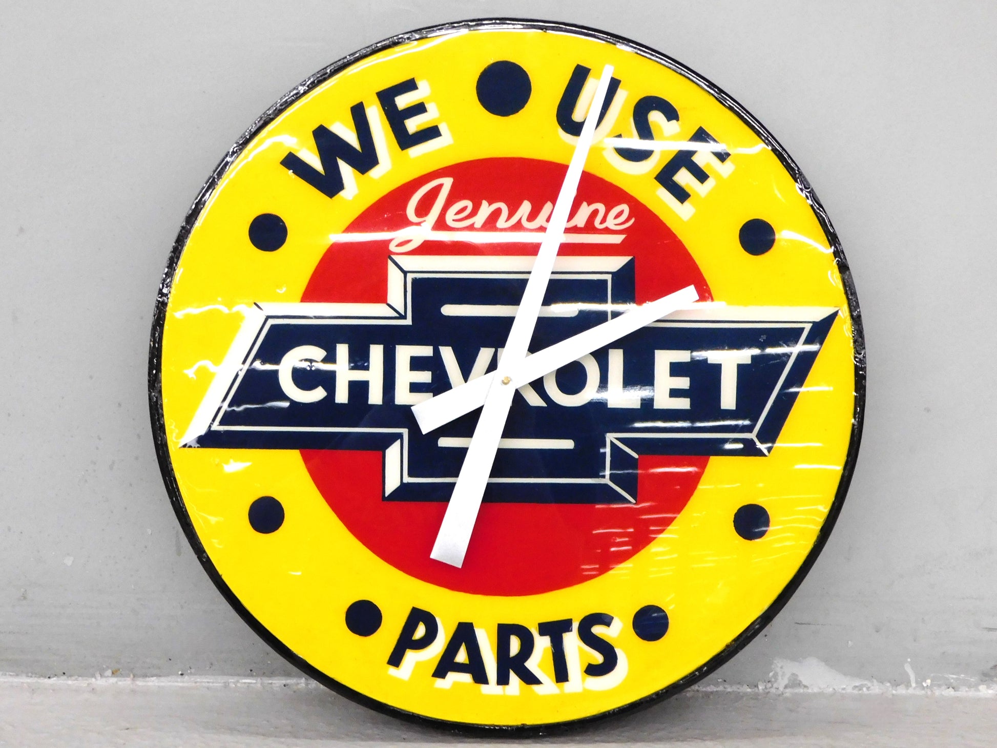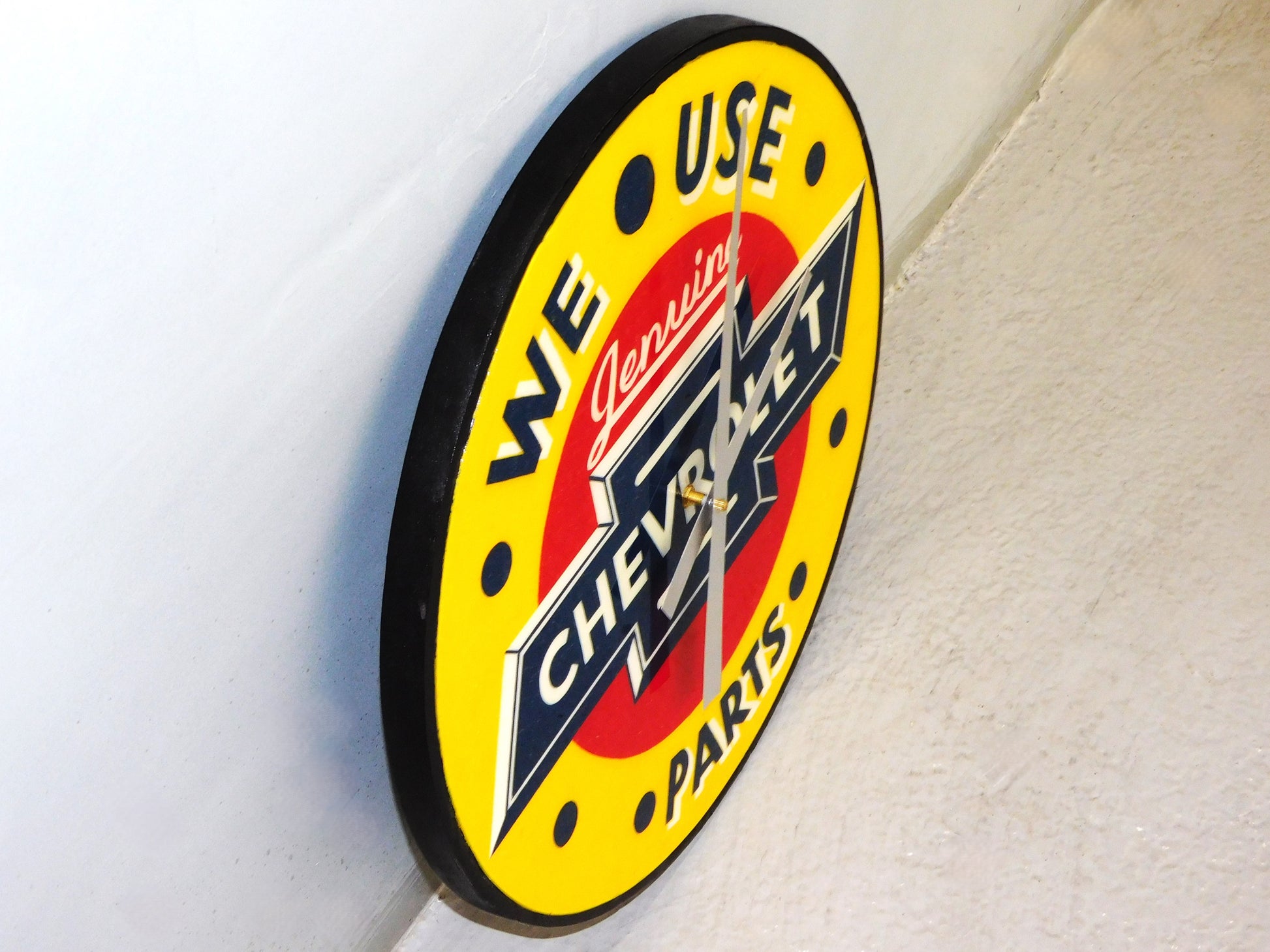 Rev up your space with thIS Genuine Chevrolet Parts Clock! Featuring a 20" handmade reproduction design, this clock is the perfect addition for any Chevy enthusiast. Keep track of time in style with this unique piece. ALL ITEMS SOLD "AS-IS"