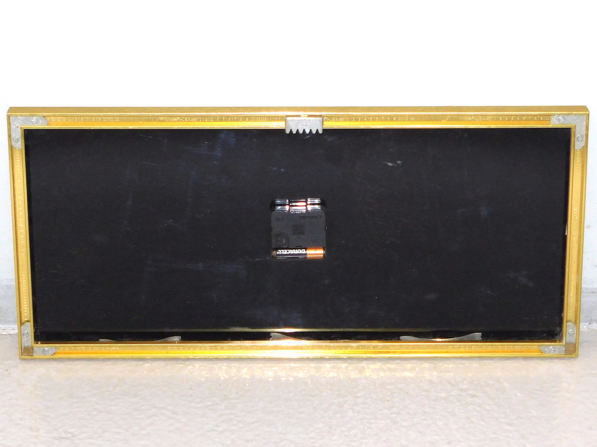 Looking for a way to add some personality to your space? Look no further than this homemade Chevrolet Gold Bow Tie Clock. Its sleek design and black face with a gold Chevrolet bow tie bring a unique touch to any room. Measuring 22"x10", this clock is the perfect blend of style and functionality. ALL ITEMS SOLD "AS-IS"