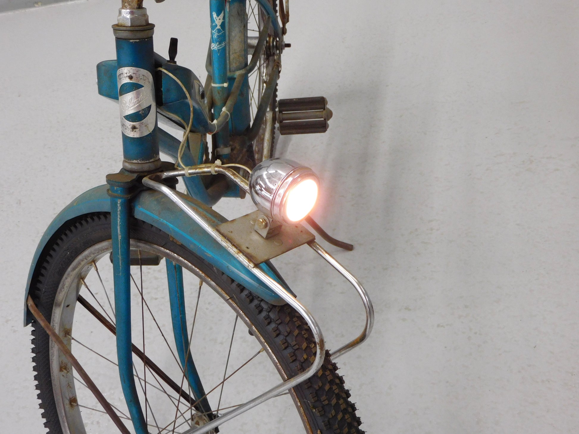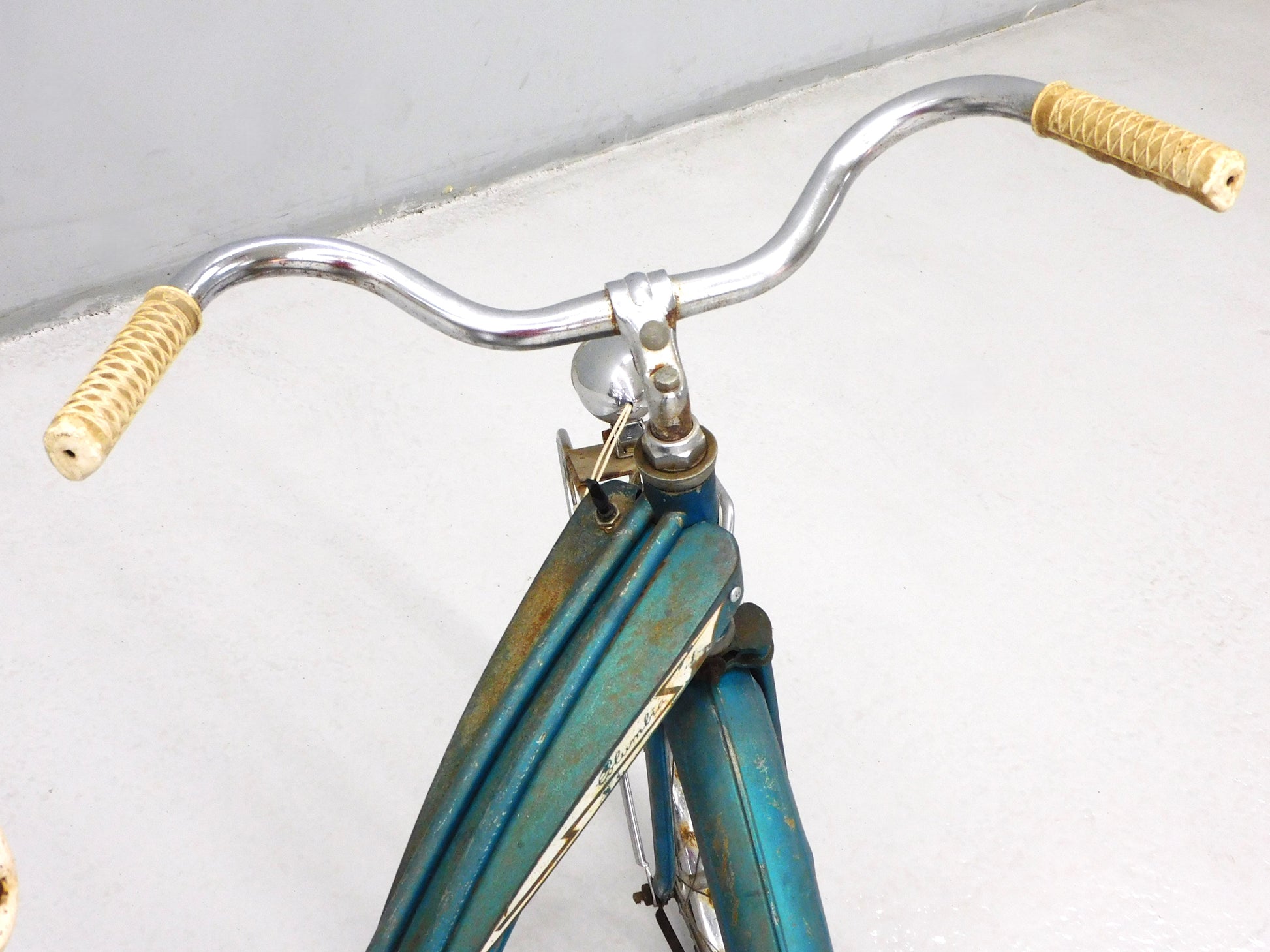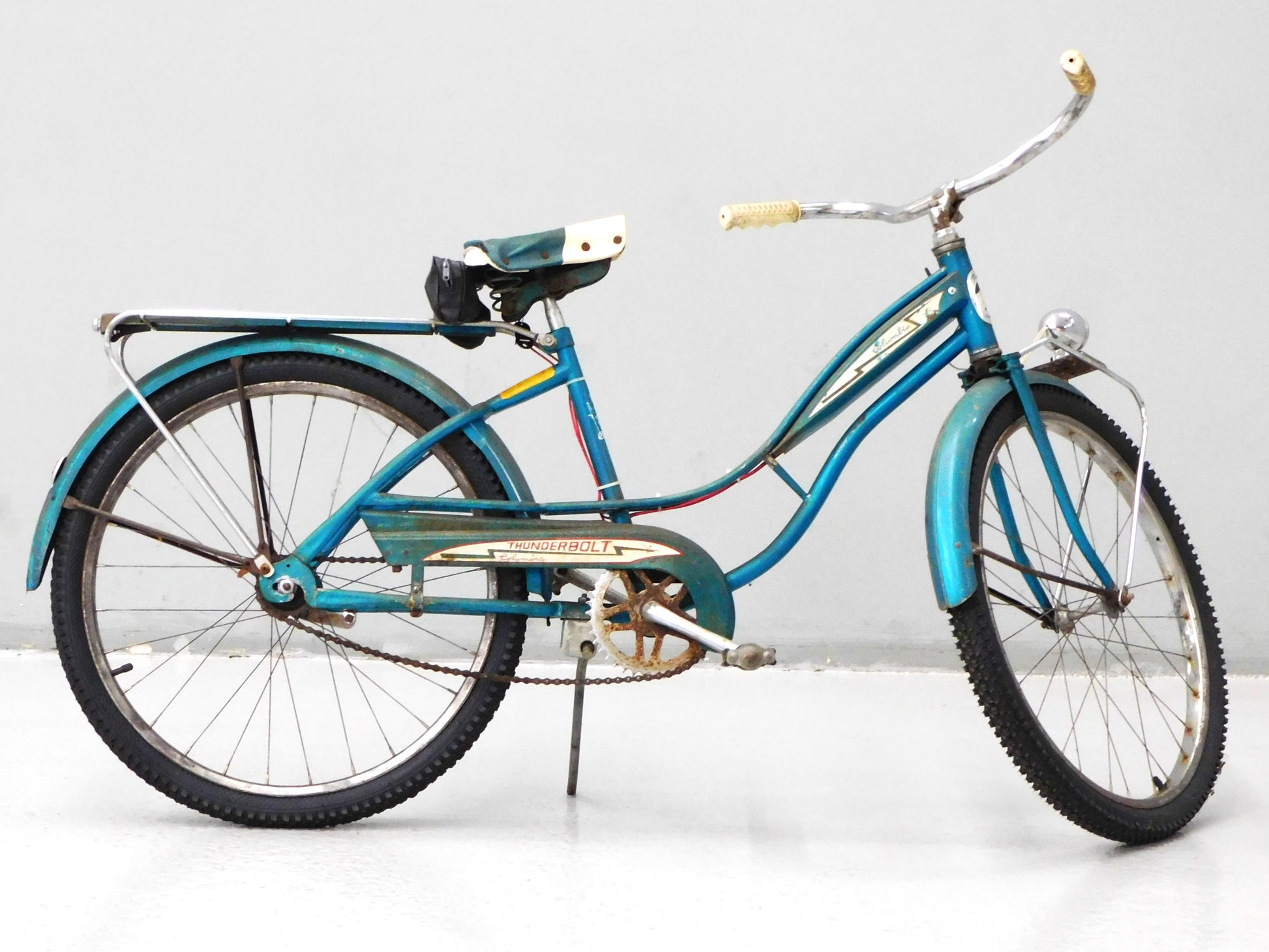 This Teal 1960 Columbia Thunderbolt is all original minus the battery pack for the horn and headlight. The serial number, H148551, is located on the rear drop-out and indicates the bicycle is from 1960. ALL ITEMS SOLD "AS-IS"