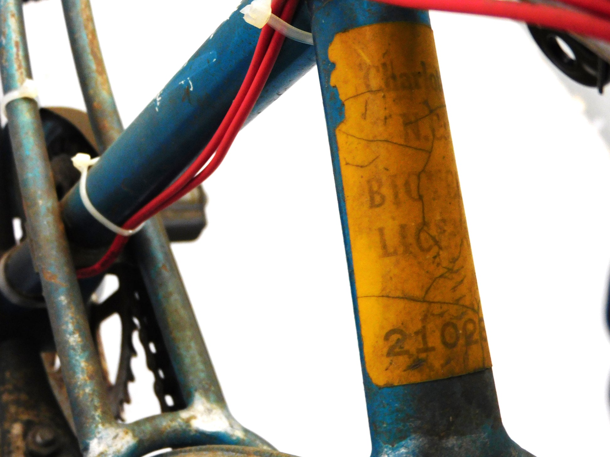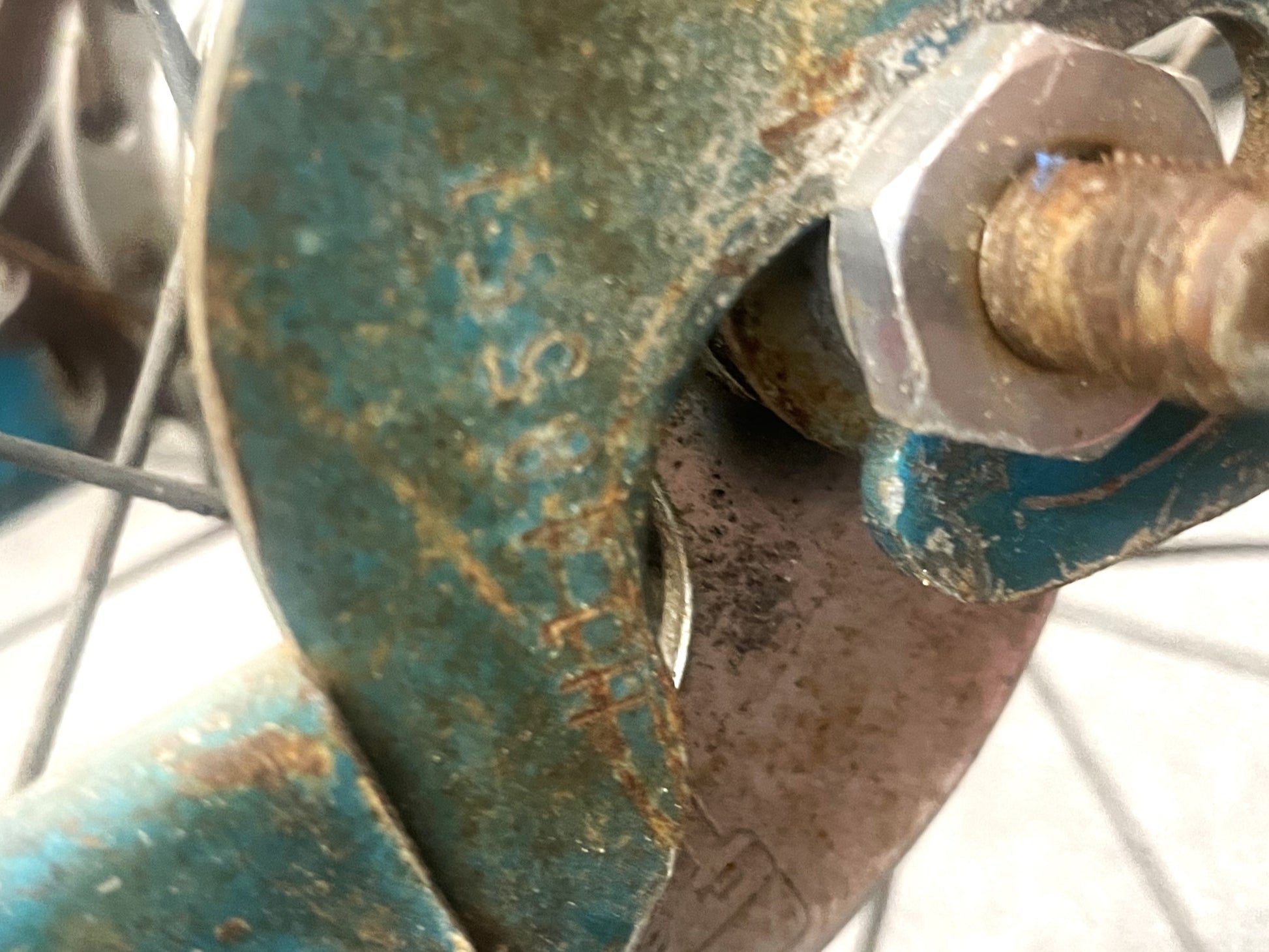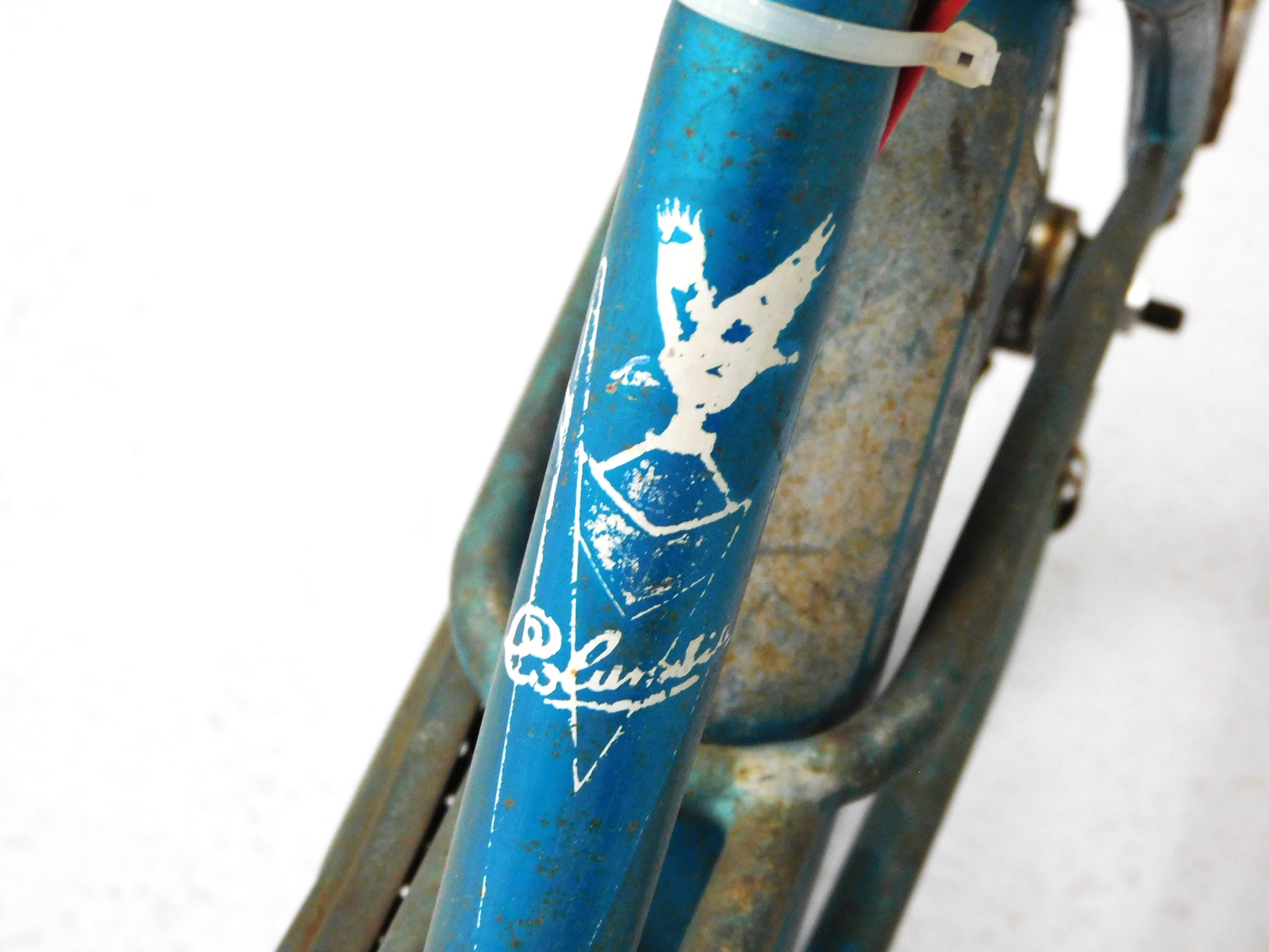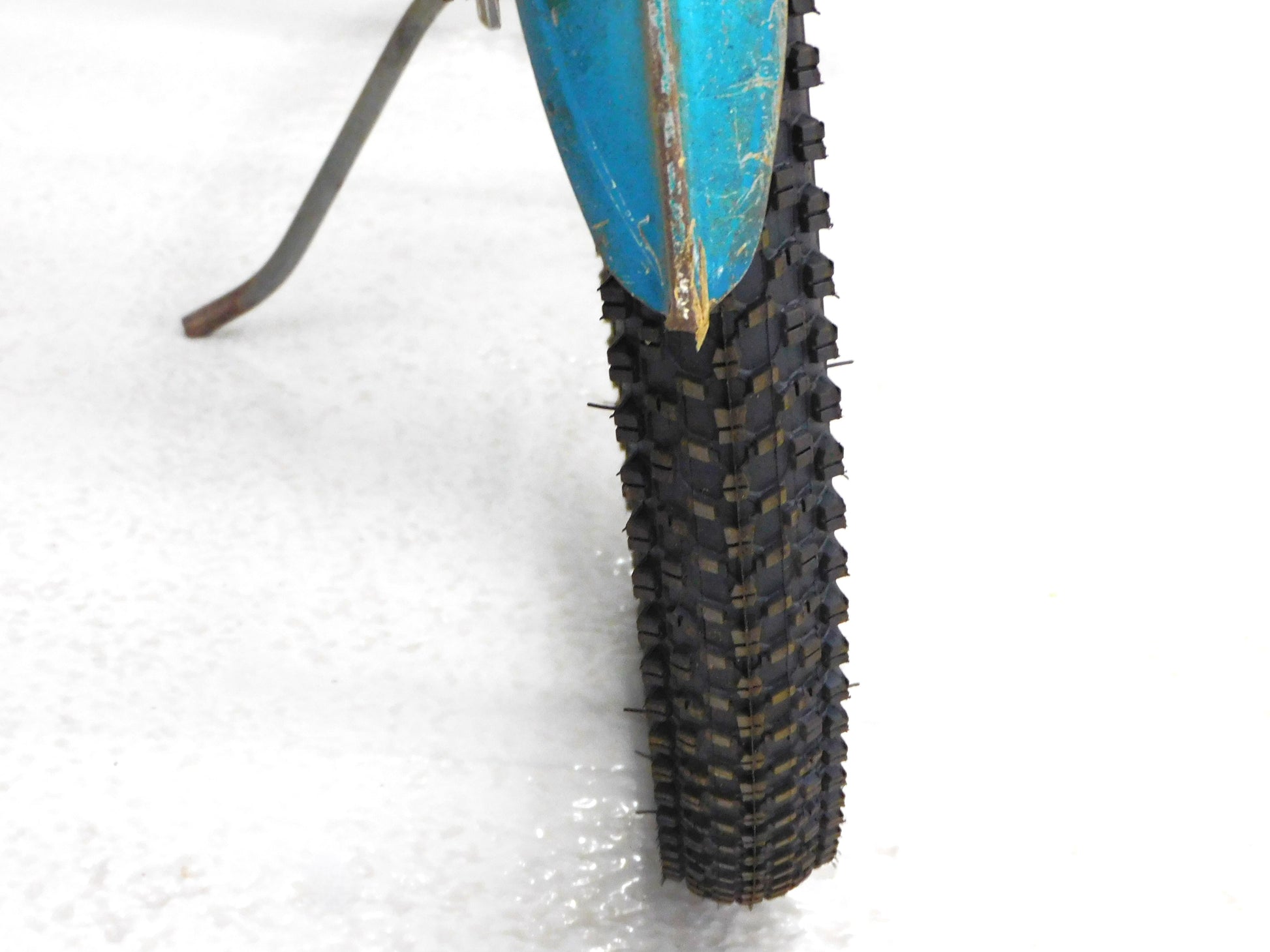 This Teal 1960 Columbia Thunderbolt is all original minus the battery pack for the horn and headlight. The serial number, H148551, is located on the rear drop-out and indicates the bicycle is from 1960. ALL ITEMS SOLD "AS-IS"
