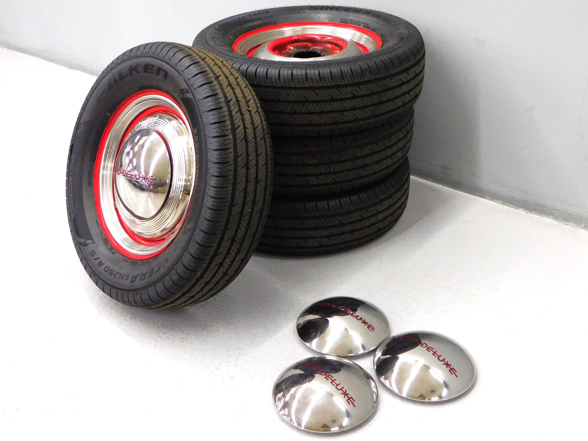 Introducing a full set of 1940 Ford Deluxe Wheels - the perfect way to add original charm to your vehicle! With beauty rings and center caps included, these wheels are a stylish and functional addition to your ride. Plus, the Sincera tires in size 225/65R16 provide excellent performance for a smooth and safe drive. Upgrade your wheels and elevate your driving experience today! ALL ITEMS SOLD "AS-IS"